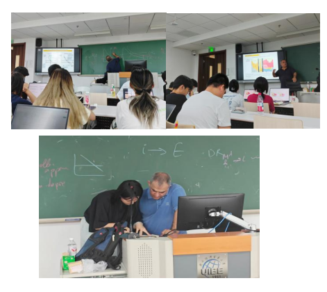 本次暑校期间,天津财经大学的8名学生均参与了《国际金融:世界经济与汇率》课程的学习,该课程由伦敦国王学院的Georgios Chortareas教授授课,课堂上,同学们认真听讲、专注思考、紧跟教授思路积极互动;课后,针对不懂的知识点,主动与教授进行探讨,力求精准掌握相关内容。