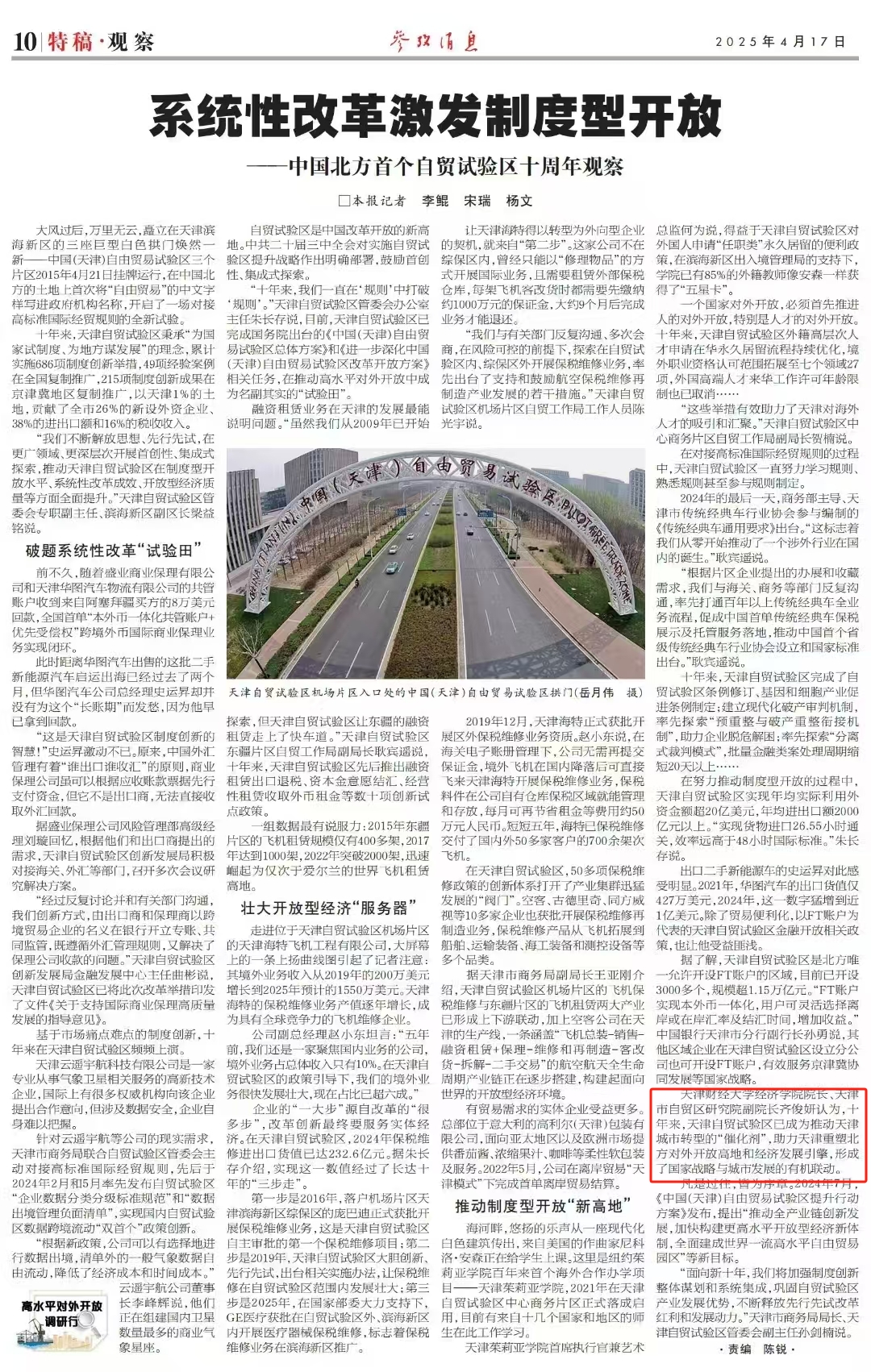 2026世界杯投注网站 院长、天津市自贸区研究院副院长齐俊妍认为,十年来,天津自贸试验区已成为推动天津城市转型的“催化剂”,助力天津重塑北方对外开放高地和经济发展引擎,形成了国家战略与城市发展的有机联动。
