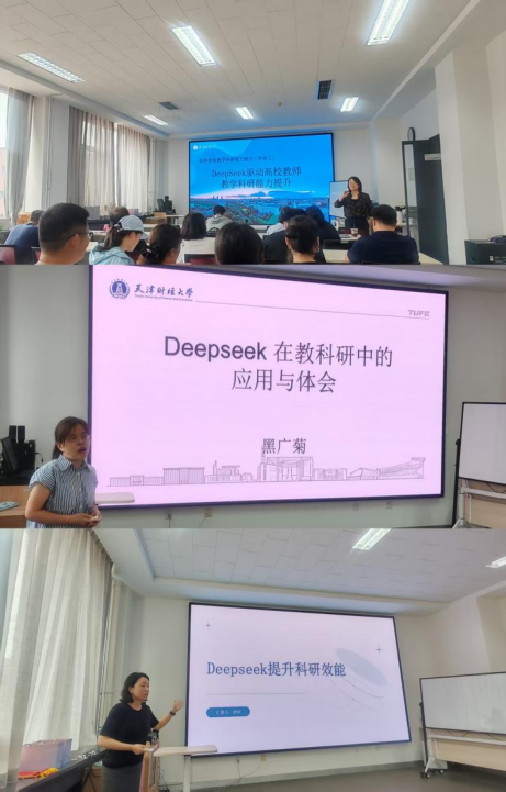 在N4-211开展“教学科研能力提升工作坊”系列活动“DeepSeek驱动高校教师教学科研能力提升”,旨在帮助教师深度掌握 DeepSeek 技术,为教学科研注入新活力,推动高等教育数字化转型。本次邀请黑广菊和唐丽两位老师对DeepSeek在教学、科研中如何应用与全院老师进行交流。