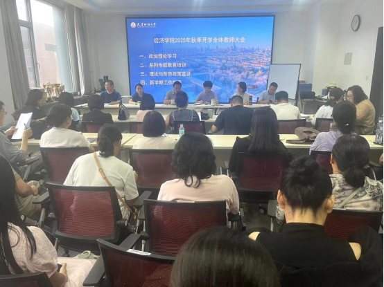 会议第一项议程为政治理论学习。韩廷波书记带领全体教师深入学习了国家主席习近平在上海合作组织成员国元首理事会第二十五次会议及“上海合作组织+”会议上的重要讲话精神,要求大家深刻领会其核心要义,把握国际国内发展大势。会上大家还集中学习了《教育强国建设规划纲要(2024-2035年)》、天津财经大学第三次党代会精神、《天津财经大学年度目标任务考核办法(试行)》以及师德师风建设、教学管理、科研规范等一系列重要文件。通过学习,进一步强化了教师的理论武装、政治意识和规矩意识,为落实立德树人根本任务奠定了坚实的思想基础。