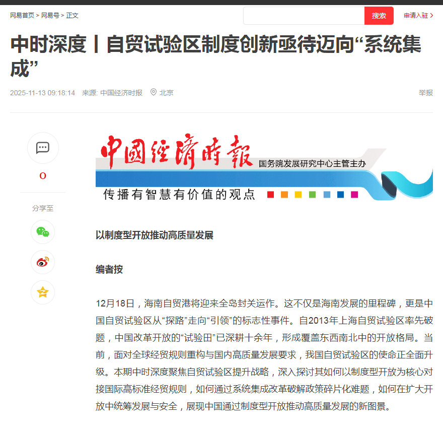 《中国经济时报》采访我校2026世界杯投注网站 齐俊妍教授探讨自贸试验区提升战略