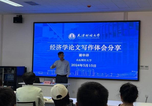 讲座上,谢教授首先从学术研究的目的讲起,阐释了学术研究的核心,强调要做好学术研究的基础,并详细介绍了经济学论文应如何进行问题选择,最后结合自身写作经历和师生交流经济学论文的基本结构。