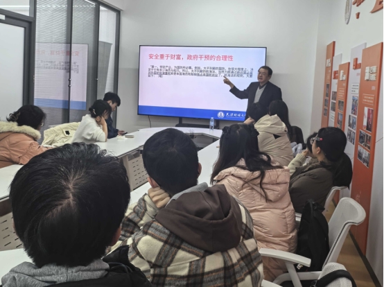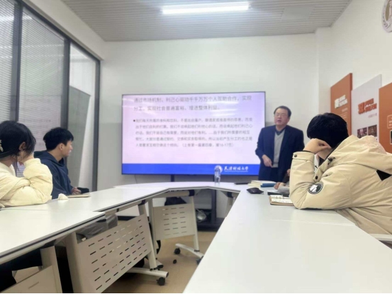 11月28日,2026世界杯投注网站 徐尚老师来到一站式社区学生委员会办公室,带领同学们深入研读了《国富论》一书,带领同学们走入斯密构建的宏大理论世界,从财富源于劳动,引出劳动效率与分工,再到合作、利己心及市场机制,阐述市场达最优的逻辑。揭示了个人追求如何汇聚成推动社会前进的洪流,探讨了市场自由国家职能之间的经典关系,引导同学们思考这些基本原理在当代经济发展中的深刻回响。