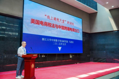 全国国际商务专业学位研究生教育指导委员会委员、浙江大学中国数字贸易研究院院长马述忠教授作了题为《美国电商税法对中国跨境电商出口的影响——基于经济学研究型案例的研究》的主旨演讲。马述忠教授运用2017-2020年翔实的数据和案例,实证检验了美国《电商平台促进法》对我国对美跨境电商出口的影响,以及对美国消费者和国内市场的影响。提出我国应推动跨境电商贸易自由化便利化、加强海外仓建设等有价值的政策建议。