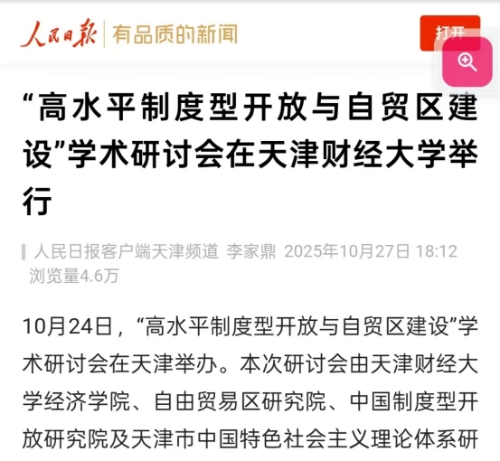 “经”讯前沿丨《人民日报》客户端、中国教育新闻网、津云报道我院举办的“高水平制度型开放与自贸区建设”学术研讨会