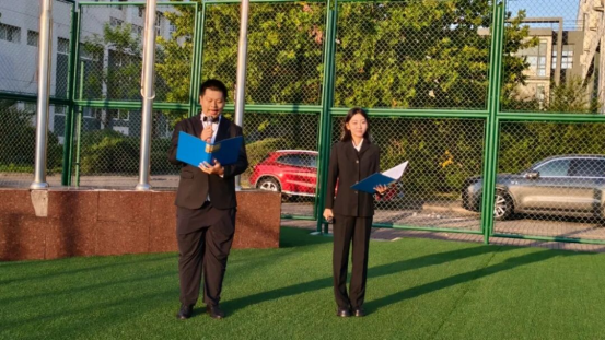 天财国旗护卫队踏着铿锵且整齐划一的步伐,执旗昂首阔步入场。当雄浑嘹亮的国歌奏响,鲜艳的五星红旗在晴空下沿旗杆徐徐攀升。全场师生昂首挺胸,目光灼灼地追随着国旗的轨迹,行注目礼。这一刻,心中涌动的不仅是对祖国发展征程的崇高敬意,更是一次爱国主义情怀的热烈激荡与升华。