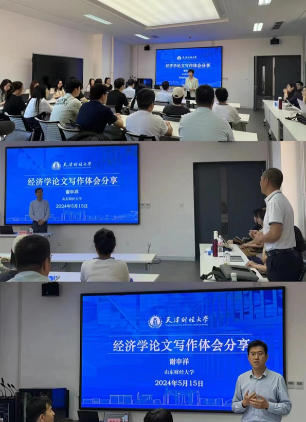 讲座上,谢教授首先从学术研究的目的讲起,阐释了学术研究的核心,强调要做好学术研究的基础,并详细介绍了经济学论文应如何进行问题选择,最后结合自身写作经历和师生交流经济学论文的基本结构。