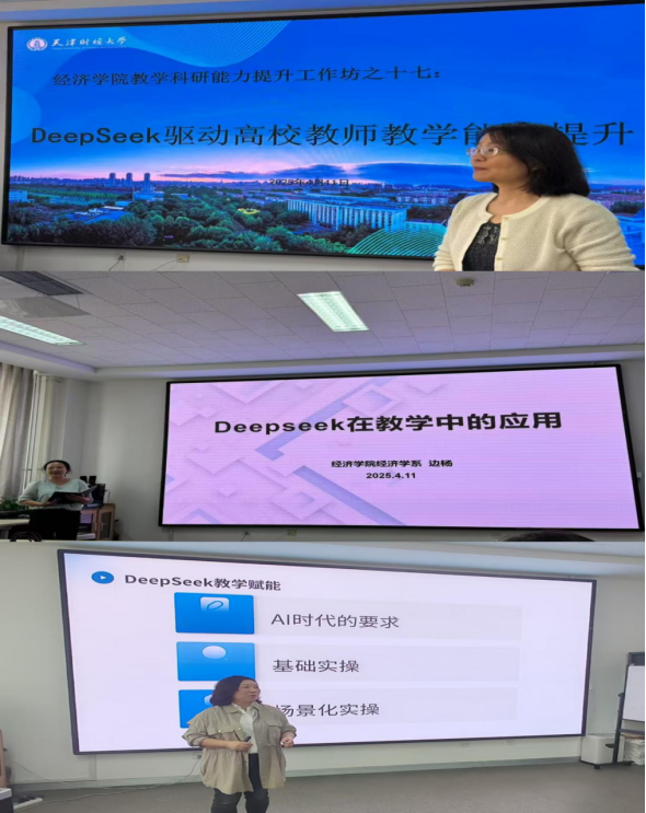 在教育变革的浪潮中,人工智能已成为推动高校教学科研发展的关键力量,中共中央、国务院印发的《教育强国建设规划纲要(2024-2035年)》明确指出要借助人工智能深化教育改革。学院积极顺应时代发展要求,选派教师参加“DeepSeek驱动高校教师教科研效能跃升工作坊活动”,并于2025年4月11日,在N4-211开展“教学科研能力提升工作坊”第十七期活动“DeepSeek驱动高校教师教学能力提升”,本次邀请刘欣和边杨两位老师对DeepSeek在教学中如何应用与全院老师进行交流。