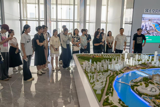 班子成员、系主任、教师党支部负责人、教研室主任、青年教师及经济学(基础学科拔尖基地班)的学生20余人走进滨海新区,深入滨海会客厅、东疆港保税区以及既明跨境电商产业园开展调研活动。此次调研旨在通过实地考察与交流,深入了解滨海新区在产业升级、自贸区建设、跨境贸易等领域的创新实践与发展经验,为学术研究与人才培养提供生动案例与实践指导。