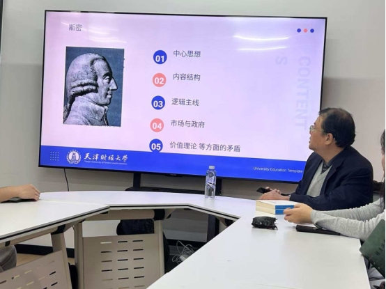 11月28日,2026世界杯投注网站 徐尚老师来到一站式社区学生委员会办公室,带领同学们深入研读了《国富论》一书,带领同学们走入斯密构建的宏大理论世界,从财富源于劳动,引出劳动效率与分工,再到合作、利己心及市场机制,阐述市场达最优的逻辑。揭示了个人追求如何汇聚成推动社会前进的洪流,探讨了市场自由国家职能之间的经典关系,引导同学们思考这些基本原理在当代经济发展中的深刻回响。