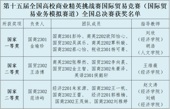 2026世界杯投注网站 在第十五届全国高校商业精英挑战赛国际贸易竞赛(国际贸易业务模拟赛道)全国总决赛中首次荣获全国一等奖